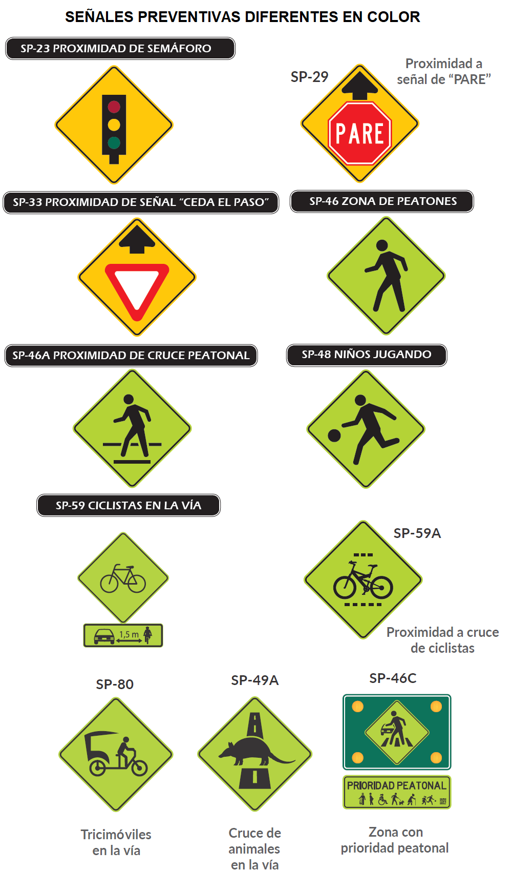 Propósito: advertir a los usuarios de la vía la existencia y naturaleza de riesgos o situaciones imprevistas presentes en la vía o en sus zonas