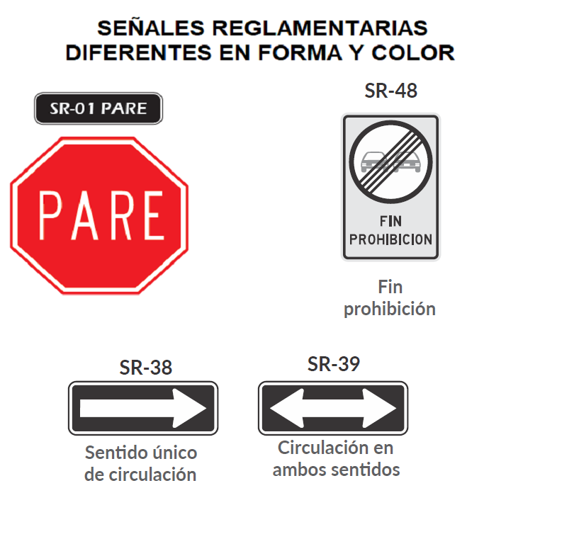 4) Un conductor debe aprender a distinguir las señales de tránsito con base en su figura y color.